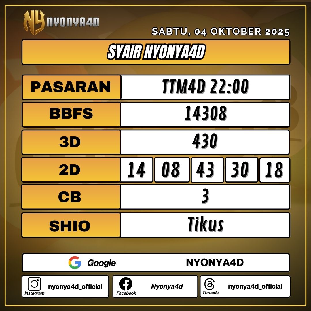 Data Keluaran dan Paito Warna Toto Macau merupakan kumpulan result yang diambil dari website resmi www.totomacaupools.asia dengan tujuan untuk mempermudah master-master dalam meracik rumusan angka di pasaran Toto Macau. Result Pasaran Toto Macau 4 setiap hari di jam 22:15 WIB