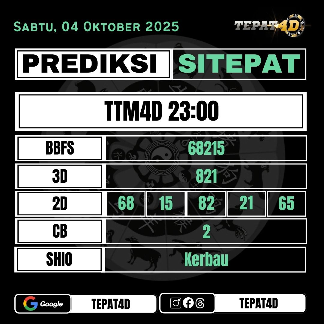 Data Keluaran dan Paito Warna Toto Macau merupakan kumpulan result yang diambil dari website resmi www.totomacaupools.asia dengan tujuan untuk mempermudah master-master dalam meracik rumusan angka di pasaran Toto Macau. Result Pasaran Toto Macau 23:00 setiap hari di jam 23:15 WIB